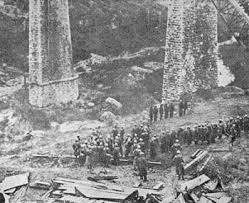 “ Στις 11 το βράδυ όλα τα τμήματα βρίσκονταν στις θέσεις τους. Έκοψαν τα τηλεφωνικά σύρματα και δόθηκε με πυροβολισμό το σύνθημα έναρξης της μάχης. Παράλληλα ξεκίνησε και το έργο των Σαμποτέρ οι οποίοι υπονόμευσαν με εκρηκτικά τις γραμμές του τρένου και τους πυλώνες της γέφυρας. Γύρω στις 1.30 σημειώθηκε η πρώτη έκρηξη. Την ώρα εκείνη κατέφθανε μια αμαξοστοιχία με ενισχύσεις απ' τη Λαμία (Λιανοκλάδι).Το τρένο είχε μπει στη γέφυρα ,όταν έγινε η έκρηξη και συνετρίβει μαζί με ένα τμήμα της. Λίγο αργότερα σημειώθηκε και δεύτερη έκρηξη και έτσι ολοκληρώθηκε η καταστροφή με επιτυχία .