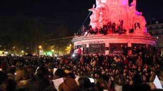 Δείτε και ακούστε λοιπόν τα βίντεο αυτής της πρωτόγνωρης λαϊκής συναυλίας που δόθηκε τη νύχτα της –σύμφωνα με τη νέα αρίθμηση του γαλλικού κινήματος- 61ης Μαρτίου 2016 στην περικυκλωμένη από τα γαλλικά ΜΑΤ Place de la Republique του Παρισιού:
